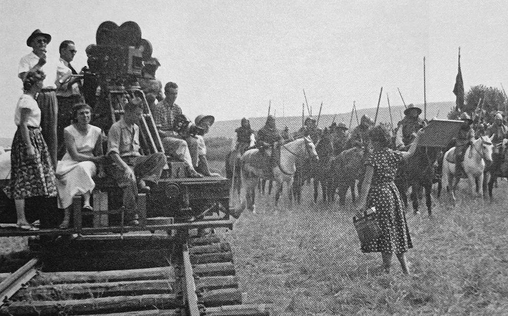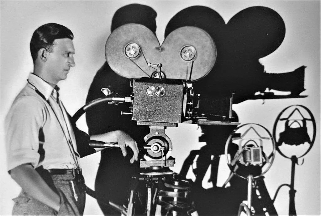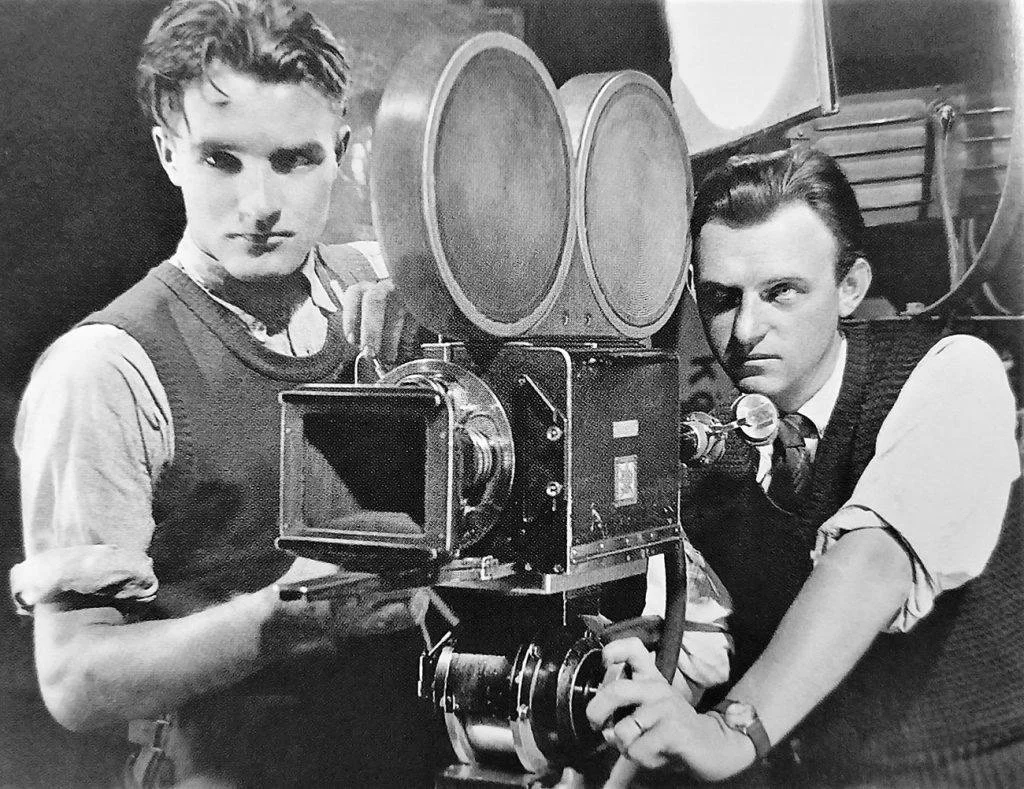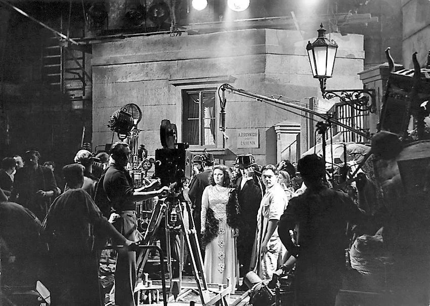 Jan Roth za kamerou na štábové fotografii filmu Kariéra Pavla Čamrdy. Film byl startem kariéry pro mladou studentku Ludmilu Babkovou, která přijala umělecké jméno Lída Baarová. Úplně vlevo dole povědomá tvář – Darja Hajská, která po válce proslula jako představitelka drben, babek a sousedek.