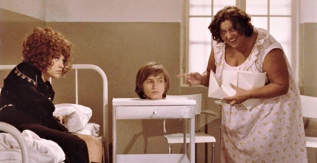 Také tady se hravost vyplatila: „Architekt postavil chodbu dvakrát, jednou normálně a podruhé sklonil podlahu i se vším, co na chodbě bylo tak, aby to vozilo herce do ředitelny. Samozřejmě kamera stála také šikmo – přesněji kolmo k šikmé podlaze chodby. Všem hercům se to ježdění moc líbilo a záběry ochotně opakovali.“